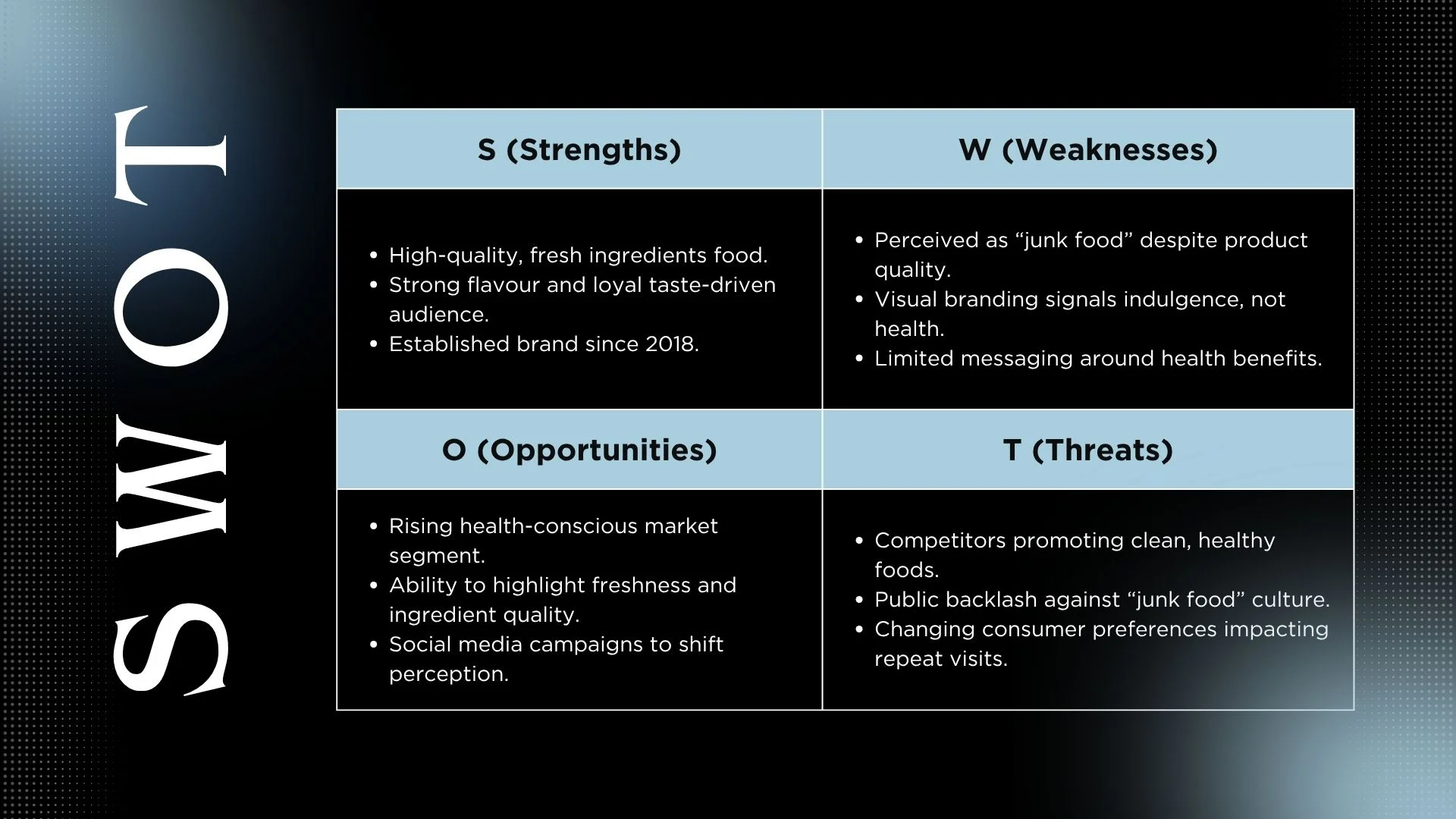 Shift perception from guilty pleasure to fresh-made, high-quality, ingredient-honest food. - Retain their original flavour-loving audience — without alienating them.