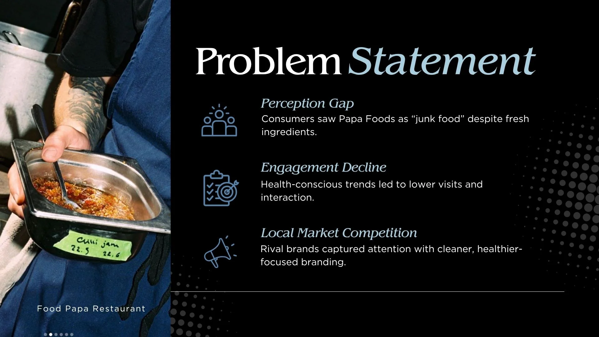 - Health Narrative Crisis: Despite using fresh ingredients, Papa Foods was grouped under “junk food” due to category perception — not product reality.